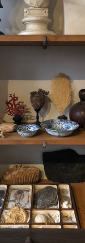 'Cabinets of curiosities (German: Kunstkammer and Kunstkabinett), also known as wonder-rooms (German: Wunderkammer), were encyclopedic collections of objects whose categorical boundaries were, in Renaissance Europe, yet to be defined. Although more rudimentary collections had preceded them, the classic cabinets of curiosities emerged in the sixteenth century. The term cabinet originally described a room rather than a piece of furniture. Modern terminology would categorize the objects included as belonging to natural history (sometimes faked), geology, ethnography, archaeology, religious or historical relics, works of art (including cabinet paintings), and antiquities. In addition to the most famous and best documented cabinets of rulers and aristocrats, members of the merchant class and early practitioners of science in Europe formed collections that were precursors to museums.' From Wikipedia, the free encyclopedia. Theme for my 2024 solo show at The Quay Gallery.